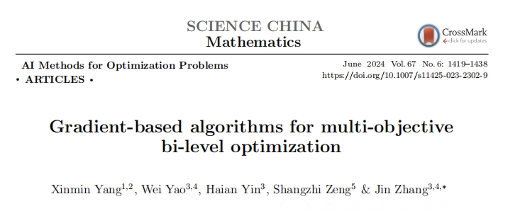 其中,杨新民教授作为第一或通讯作者,与团队成员共同完成的2篇论文成果《Gradient-based algorithms for multi-objective bi-level optimization》《Alleviating limit cycling in training GANs with an optimization technique》被该专辑收录。