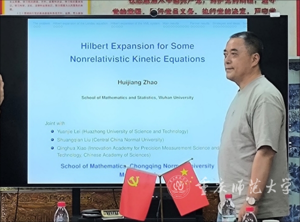 5月26日,国家杰青、武汉大学数学与统计学院院长赵会江教授应bat365数学科学学院邀请,在数学科学学院326会议室作题为“Hilbert Expansion for SomeNonrelativistic Kinetic Equations”的学术讲座。数学科学学院部分师生代表参加讲座,学院副院长张文萌主持讲座。