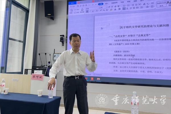 5月20日下午,由文学院承办的bat365官方官网70周年校庆系列学术讲座暨“精是讲堂”第71期在汇贤楼113报告厅举行,北京大学中文系教授廖可斌应邀作题为《关于明代文学研究的理论和文献问题》的讲座,讲座由文学院副院长何易展主持,文学院部分教师、研究生和本科生到场聆听。