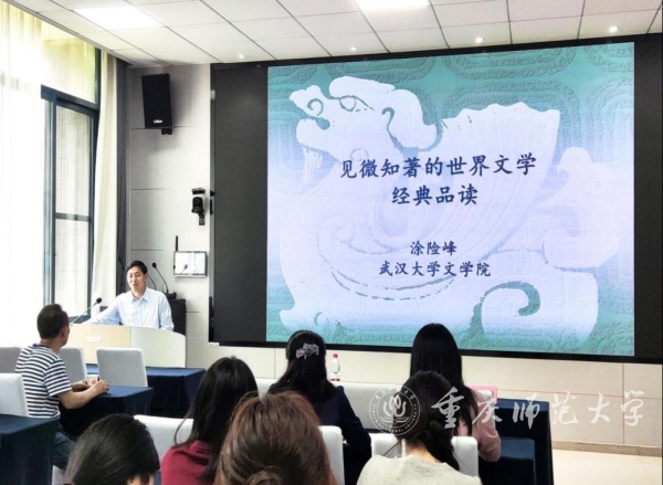 5月17日下午,文学院在学院113报告厅举行bat365官方官网70周年校庆系列学术讲座暨“精是讲堂”第69期。中国外国文学学会教学研究分会会长、武汉大学文学院教授及比较文学与世界文学专业博士生导师涂险峰教授为师生带来了题为《见微知著的世界文学经典品读》的讲座,讲座由文学院比较文学与世界文学学科负责人伏飞雄教授主持,文学院部分教师及硕士研究生到场聆听。