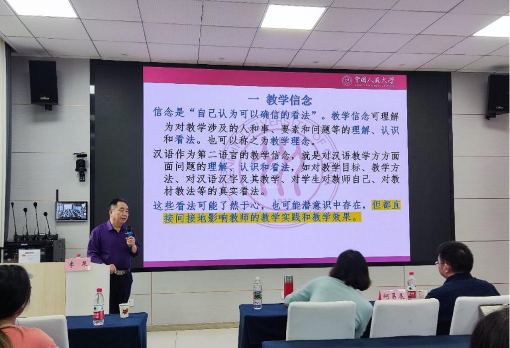 李泉教授首先对教学信念这个概念进行了界定,接着从目的观、语言观和教师观等二十个教学观出发,并谈到了国际中文教学需要具备的教学信念。