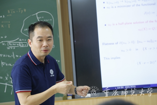 4月11日下午,国家杰青、深圳大学数学与统计学院院长杜力力教授应邀参加bat365数学科学学院学术交流会,并作题为“Bernoulli-型自由边界问题的正则性和奇异性”的学术报告。电子科技大学向昭银教授,西华大学王玉兰教授,重庆交通大学张建军教授、张琴副教授,数学科学学院应用数学系主任周寿明、谢莉教授等师生代表参加讲座,讲座由谢莉主持。