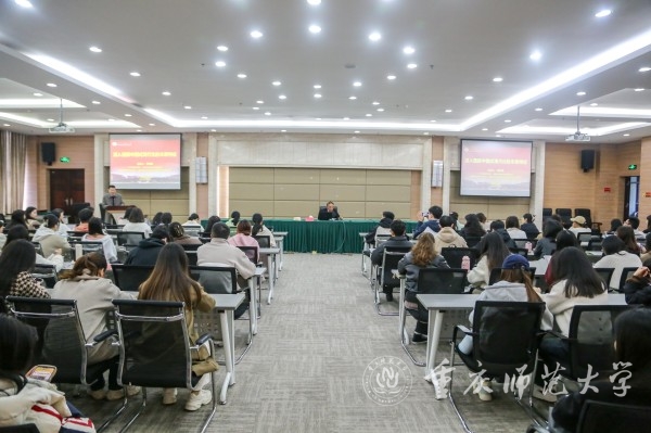 为深入贯彻党的二十大精神,进一步加深有关中国式现代化论述的理解,11月26日上午,马克思主义学院特邀十三届全国政协委员、全国政协社会和法制委员会委员、中国政策科学研究会副会长、中国社会科学院马克思主义研究院原院长、党委书记、博士生导师邓纯东研究员在三春湖会议厅作题为“深入理解中国式现代化的本质特征”的学术讲座。马克思主义学院副院长(主持行政工作)姜土生教授主持,学院部分师生代表参加。