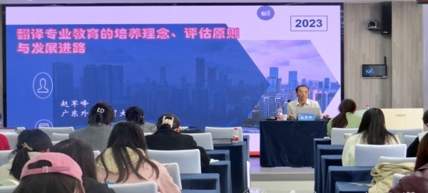11月17日下午,第四届全国翻译专业学位研究生教育指导委员会副主任委员、广东外语外贸大学翻译学研究中心主任赵军峰教授应邀为外国语学院师生作题为“新时代翻译专业教育的理念、原则与进路”的专题讲座。讲座由外国语学院副院长杨洁主持,学院部分师生代表参加。