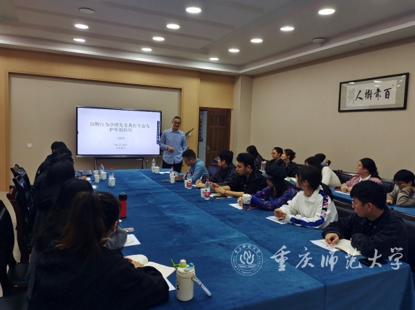 10月27日上午,著名动物行为学者、北京师范大学刘定震教授应邀做客“生态文明讲坛”作题为“动物行为学研究及其在生态保护中的应用”的学术报告。报告会由bat365鱼类生态与保护中心主任、生命科学学院夏继刚教授主持,生命科学学院师生代表40余人参加。