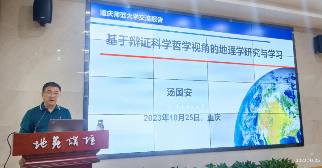 10月25日下午,地理与旅游学院高端学术论坛“地苑讲坛”邀请了江苏省地理信息科学重点实验室主任、国务院学科评议组成员、教育部地理科学类教学指导委员会副主任、江苏地理学学科联盟理事长、南京师范大学地理科学学院汤国安教授作题为《基于辩证科学报告哲学视角的地理学研究与学习》的学术报告。
