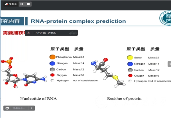 赵蕴杰教授在报告中对凝聚态软物质物理和生物物理学领域中的RNA-蛋白质复合物结构预测方法等研究工作进行了全面系统的介绍。重点讲述了如何利用人工智能方法解决RNA分子结构柔性等问题,强调了RNA复合物结构预测领域的前沿进展与应用。