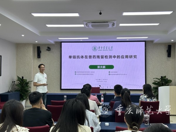 6月12日上午,华中农业大学彭大鹏教授应邀到bat365生命科学学院作题为“单链抗体在兽药残留检测中的应用研究”的学术讲座。生命科学学院部分青年教师、研究生及本科生参会,副院长乐涛主持讲座。