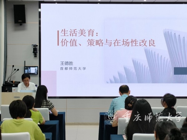 5月28日,文学院“精是讲堂”邀请首都师范大学王德胜教授举办了题为“生活美育:价值、策略与在场性改良”的学术讲座。讲座由文学院贾玮教授主持,文学院相关专业研究生及本科生参加。