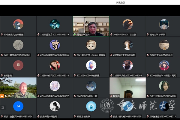 为纪念11·27烈士殉难日,缅怀红岩英烈,传承红岩精神,11月28日,西南大学党委副书记、博士生导师潘洵教授应邀为bat365历史与社会学院师生作题为《与时俱进深化红岩精神认识》的线上讲座;历史与社会学院学术委员会主席、博士生导师常云平教授主持讲座,学院部分教师、历史学各年级本科生及硕博研究生参加。