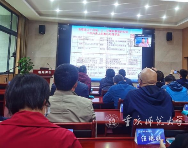 讲座中,陈发虎院士从初创期、过渡期、建设期、发展期系统介绍了中国地理学会与中国地理科学的历史发展脉络,展示了中国百年地理科学的重要成果以及当代前沿研究热点;对地理科学内涵、研究对象、学科任务、学科体系、高校地理学科发展历程等进行了系统剖析;介绍了地理科学在实现推动中华民族伟大复兴的重要作用,并从国家战略、生态文明建设、低碳减排等视角展示了地理科学的未来发展方向与前景。陈发虎以史前人类扩散和东西方文化交流路径迁移变化介绍了地理学研究应用案例,并向师生推荐了地理科学10本经典读物。他鼓励与会学者要立足中国、放眼世界,敢于创新、勇于创新,为地理科学发展贡献中国理论、中国思想。
