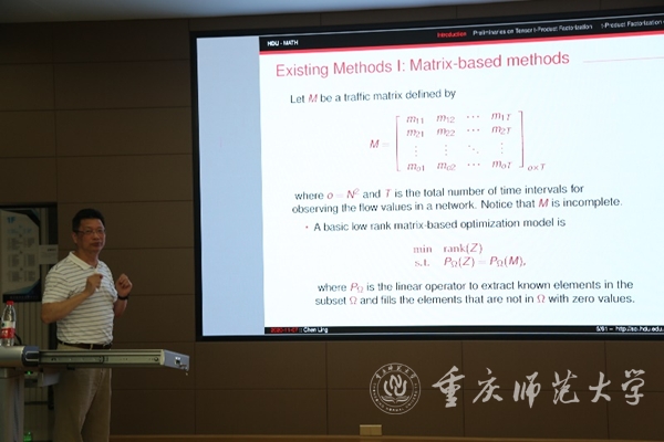 6月29日下午,应重庆国家应用数学中心主任杨新民教授邀请,中国运筹学会数学规划分会副理事长、中国经济数学与管理数学研究会副理事长、杭州电子科技大学理学院凌晨教授于重庆国家应用数学中心115学术报告厅为bat365师生作题为《t-Product Factorization Optimization Method for Internet Traffic Data》的学术报告。
