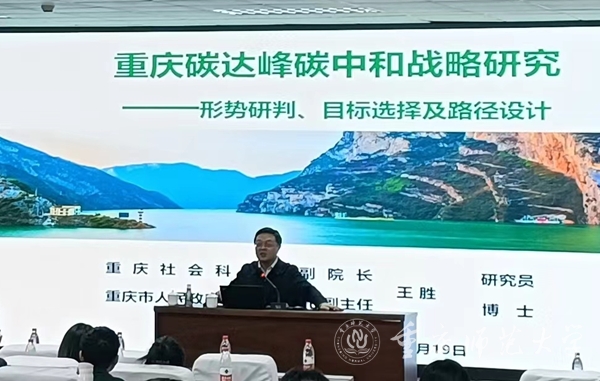 5月19日下午,重庆社会科学院副院长王胜研究员应bat365经济与管理学院邀请,于求是楼517会议室就“重庆碳达峰碳中和战略研究——形势研判、目标选择及路径设计”主题作专场学术讲座。讲座由经济与管理学院副院长陈宇科主持,学院青年教师和研究生参与了此次讲座。