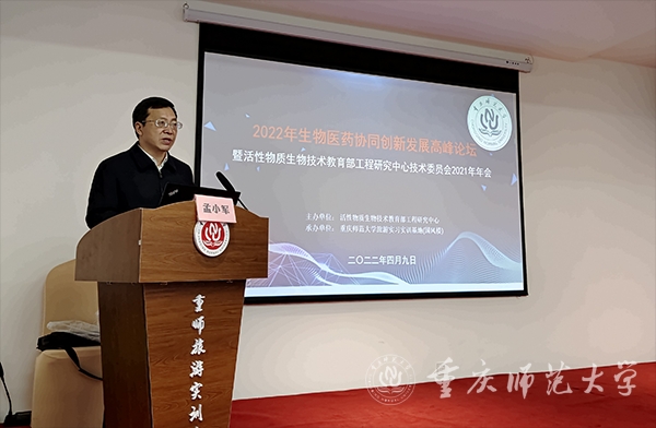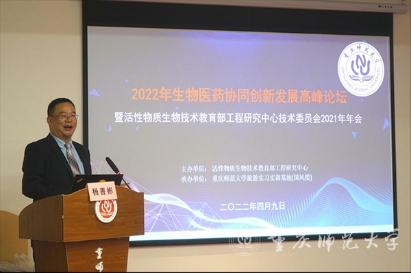 为加强各单位交流,总结2021年成绩,展望2022年发展,2022年4月9日,由活性物质生物技术教育部工程研究中心主办的“2022年生物医药协同创新发展高峰论坛暨活性物质生物技术教育部工程研究中心技术委员会2021年年会”于bat365官方官网大学城校区国风楼会议室成功举行。bat365官方官网副校长孟小军出席会议并致辞,相关职能部门及学院领导出席会议。重庆市内外生物医药相关专家、学生、企业工程技术人员以及各专委会委员通过“线上+线下”的模式,围绕“生物医药创新发展、人才培养、中医药与民族药发展”等内容进行了广泛而深入地交流。会议由活性物质生物技术教育部工程研究中心主任杨善彬教授主持会议。