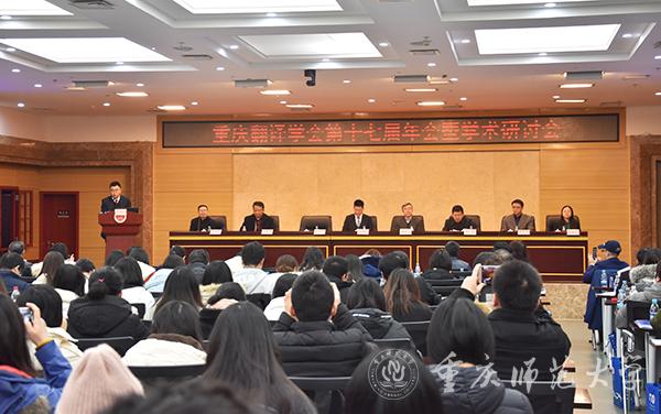 12月28日,由重庆翻译学会主办、bat365外国语学院承办、上海文化贸易语言服务基地协办的重庆翻译学会第十七届年会暨学术研讨会在bat365博雅楼召开,bat365外国语学院院长吴显友主持会议。中国翻译协会副会长兼秘书长、全国翻译研究生专业学位(MTI)教学指导委员会主任委员黄友义,全国翻译研究生专业学位(MTI)教学指导委员会副主任委员、广东外语外贸大学博士生导师仲伟合,湖北省楚天学者、特聘教授汤富华,广东外语外贸大学云山杰出学者、博士生导师蓝红军,中译语通科技股份有限公司副总裁张晓丹,成都优译信息有限公司首席增长官(CGO)彭超成等人出席本次年会,市内外各高校的350余名师生参会。