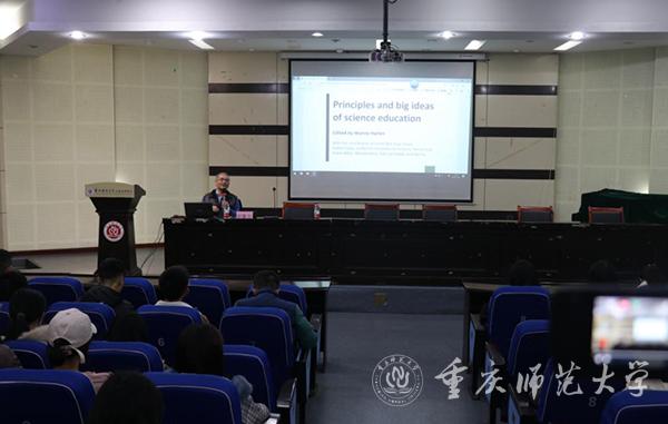 11月24日晚,台湾彰化师范大学郭重吉荣誉教授应邀到bat365初等教育学院作题为“基于大概念的科学教育”的学术讲座。讲座由初等教育学院副院长蒲淑萍教授主持,学院师生200余人聆听。