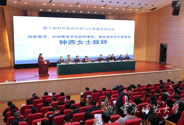 研讨会开幕式于11月23日上午在校友会堂音乐厅举行。国家督学、中国教育学会副理事长、重庆教育学会理事长钟燕女士,校长孟东方教授,中国教育学会科学教育分会理事长胡卫平教授、常务副理事长彭蜀晋教授、副理事长龚大洁教授、副理事长王耀村特级教师,中国青少年科技辅导员协会科学教师教育专委会副主任委员崔鸿教授,重庆市教育科学研究院院长蔡其勇教授,重庆市科协科技服务中心赵开宇主任,学校教务处、科研处、研究生院负责人等出席了开幕式。开幕式由中国青少年科技辅导员协会副理事长、中国教育学会科学教育分会副理事长、初等教育学院院长林长春教授主持。