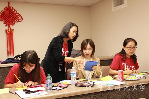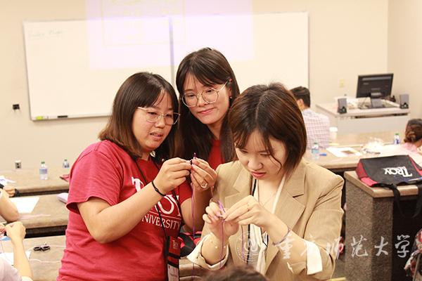 此次论坛还精心安排了中国文化小艺术品制作工作坊。特洛伊大学孔院两位访问学者程文娟老师和何艳老师详细地为大家讲解了制作步骤,并亲自示范,细心指导,全体教师积极参与其中。