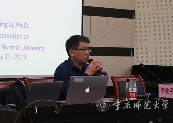 2019年5月21日晚,美国德克萨斯农工大学教学与文化系教授、《STEM教育研究》杂志主编李业平先生应邀到bat365初等教育学院逸思讲堂为200余名师生做了一场题为“STEM教育和教师教育——机遇与挑战”的主题讲座。此次讲座由重庆市儿童发展与教师教育研究中心、重庆市科普基地主办,初等教育学院院长林长春教授主持。