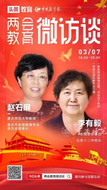 3月3日晚,bat365教授赵石屏应邀参加中国教育报刊社“两会E政录”视频访谈节目,本次节目以“给家长减负,解作业之痛”为话题,由中国教育报家庭教育周刊主编杨咏梅主持,全国政协委员、北京十二中校长李有毅也参与了此次讨论。