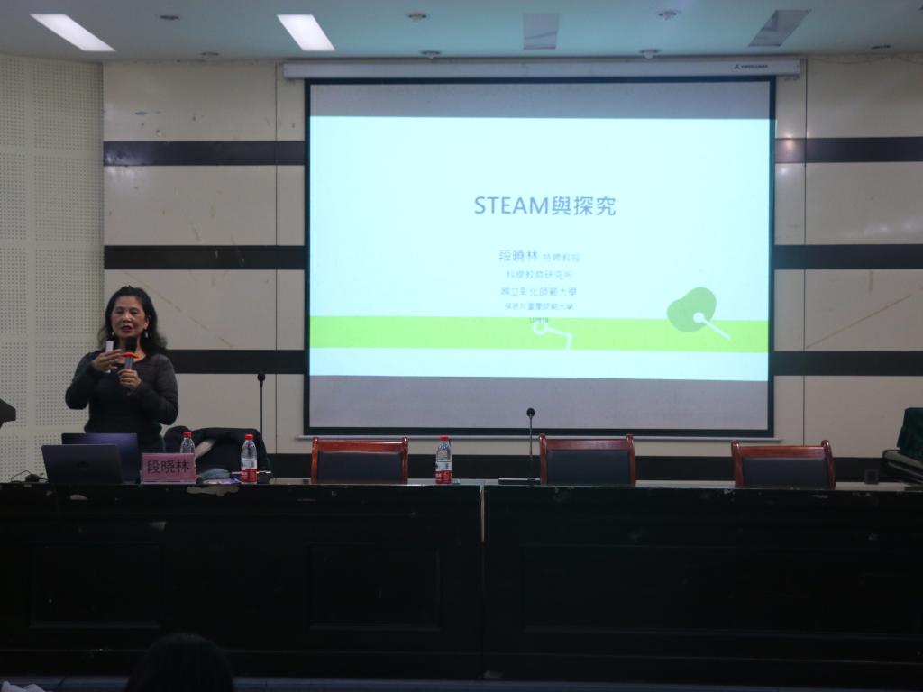 2018年11月6日晚,台湾彰化师范大学特聘教授、博士生导师段晓林应邀到bat365初等教育学院作“STEAM与科学探究”的专题讲座。讲座由初等教育学院院长林长春教授主持。全院近200名师生认真聆听了段晓林教授的精彩讲座。