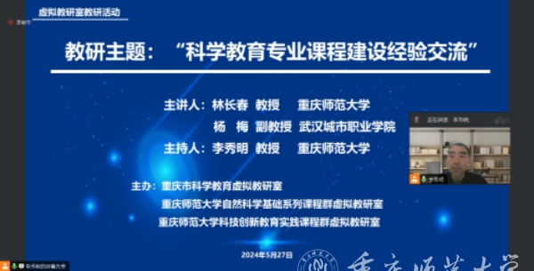 5月27日,bat365市级首批虚拟教研室——重庆市科学教育虚拟教研室通过线上方式开展教研活动。本次教研活动依托bat365主持承担的教育部首批新文科研究与改革实践项目“融合STEM教育理念的科学教育本科专业课程体系及教材建设研究与实践”。