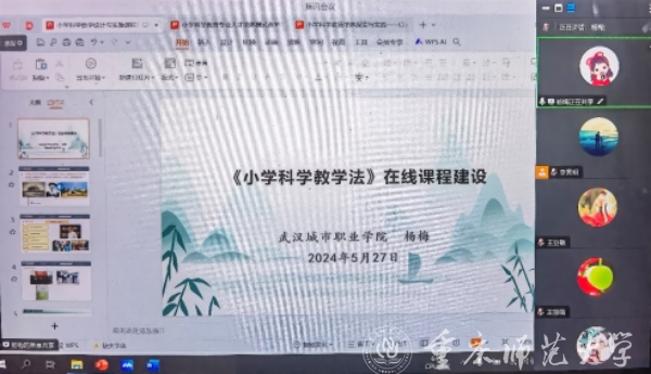 武汉城市职业学院初等教育学院副院长、小学科学教育专业负责人杨梅副教授以“《小学科学教学法》在线课程建设”为题分享课程建设经验。她简要介绍了武汉城市职业学院小学科学教育专业发展概况,并围绕小学科学教学法课程建设历史、课程目标设定、课程结构搭建、课程内容设计、课程思政教学、课程资源建设、课程团队组成等内容展开讲座。