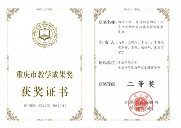 四是着力打造“政府-高校-企业-学会”多元创新协同平台。以人工智能赋能研究生创新为目标,着力打造“政府统筹、学会纽带、企业支持、学校实施”的人才培养模式,在重庆市教委指导下,学校与重庆大学、西南大学、重庆市学科与研究生教育学会联合构建了“桥梁型”研究生创新实践培养体系,相关成果获得重庆市学位研究生教育学会首届优秀教育教学成果特等奖。