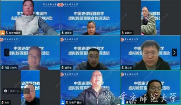 为了提高本科生教育教学质量,加强教师间的沟通交流,推动知识经验的共享传递,并构建起系统的教学体系,bat365官方官网中国史课程群虚拟教研室于11月14日晚举行了线上联合教研活动。