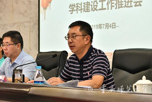接下来,董景荣副校长围绕bat365学科建设总体工作发言。他强调,学校党政高度重视学科建设工作,第三次党代会也为学科建设明确了新的目标任务,孟校长多次组织召开学科建设工作会议、亲力亲为全面开展学科调研、协调相关部门推进学科联动发展。同时,学校始终坚持分层建设的思路,在国家“双一流”建设的大背景下,从“一流学科”建设、市级重点学科建设、特色学科群建设三个层面着力,围绕博士点申报、学科评估等重点工作,全面推进学科建设的快速发展。因此,希望各学院党政领导要高度重视学科建设工作,认真学习领会上级部门和学校的相关文件精神,真抓落实,高质量完成学科建设各项目标任务。