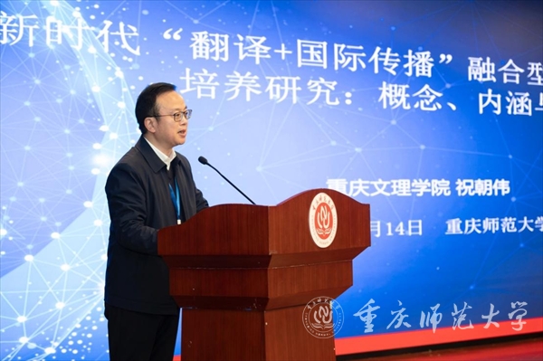 重庆文理学院党委副书记祝朝伟从跨文化传播与人才培养的双重视角,提出“翻译+国际传播”融合型文学翻译人才的培养模式。他强调,新时代翻译教育应综合提升传播力、文学力与技术力,构建跨学科的教学体系,以推动中国文化在全球范围内的传播,增强其国际影响力。
