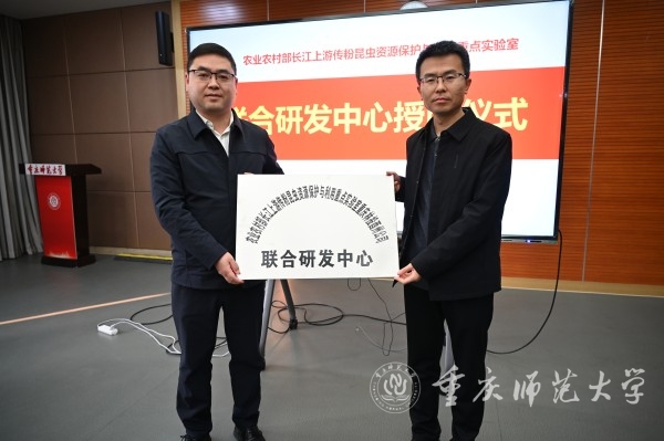 崔晋波为“农业农村部长江上游传粉昆虫资源保护与利用重点实验室重庆林投酉州公司联合研发中心”授牌。