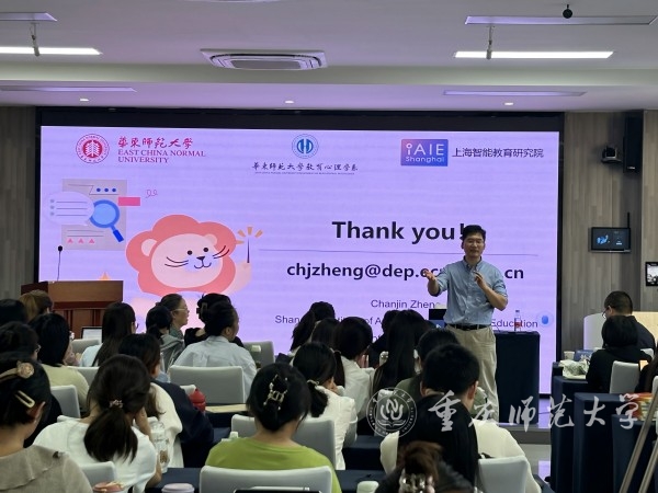 在交流环节,郑蝉金副教授与师生亲切交流。郑蝉金副教授以其丰富的实践经验与扎实的理论基础,拓宽了同学们的视野。此次讲座让在座师生了解到智能化心理与教育测量对教育的助推作用,提供了人工智能技术与教育深度融合的新视角,并为未来的学术研究带来了宝贵的启示。