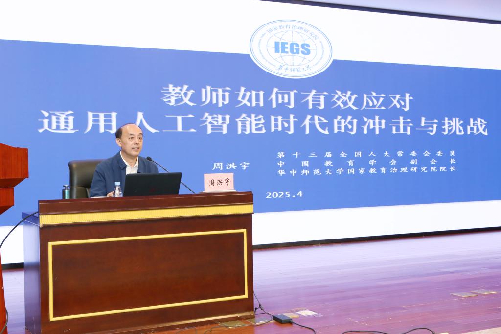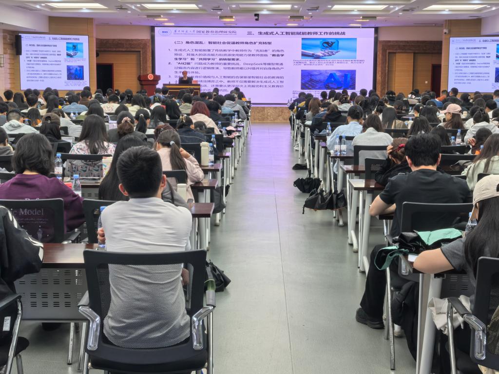 周洪宇教授以《教师如何有效应对通用人工智能时代的冲击与挑战》为题,阐释了以DeepSeek为代表的生成式人工智能技术对教育生态的深刻变革影响,系统分析了智能时代教师专业发展面临的多维挑战与应对策略。交流环节,师生围绕数字化教学实践等议题展开深入交流。