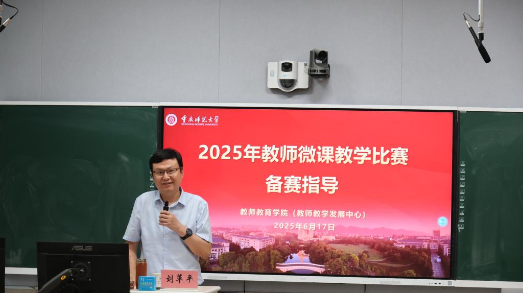 6月17日下午,由教师教育学院(教师教学发展中心)主办的“2025年教师微课教学比赛备赛指导”工作坊在弘德楼14104智慧教室成功举行。活动特邀教育技术领域专家、西南大学刘革平教授担任主讲嘉宾,来自各学院的35名教师参与学习交流,教师教育学院副院长蒲淑萍主持活动。