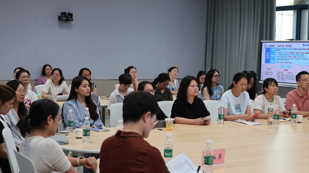 刘革平教授以“本科高校微课教学比赛之我见”为题作专题报告。他紧扣2025年重庆市教师微课教学比赛要求,从四个维度系统阐述了微课设计的核心要素:一是微课作品选题设计要“小而精、准而深”;二是教学内容要“科学为本、育人为魂”;三是作品规范要“技术为基、细节制胜”;四是教学效果要“以生为本、创新为要”。通过优秀案例的生动展示,刘教授详细讲解了“精准选题、情境创设、技术赋能”等微课设计制作核心要诀。在互动环节,与会教师积极提问,刘教授逐一耐心解答了教师们在备赛过程中的问题,现场研讨氛围热烈。