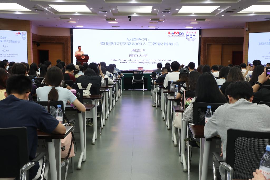 6月17日上午,南京大学副校长、国家杰青周志华教授应邀来校做题为《反绎学习:数据知识双驱动的人工智能新范式》的学术报告。报告会由党委副书记、校长王国胤主持,全校300余名师生代表参加。