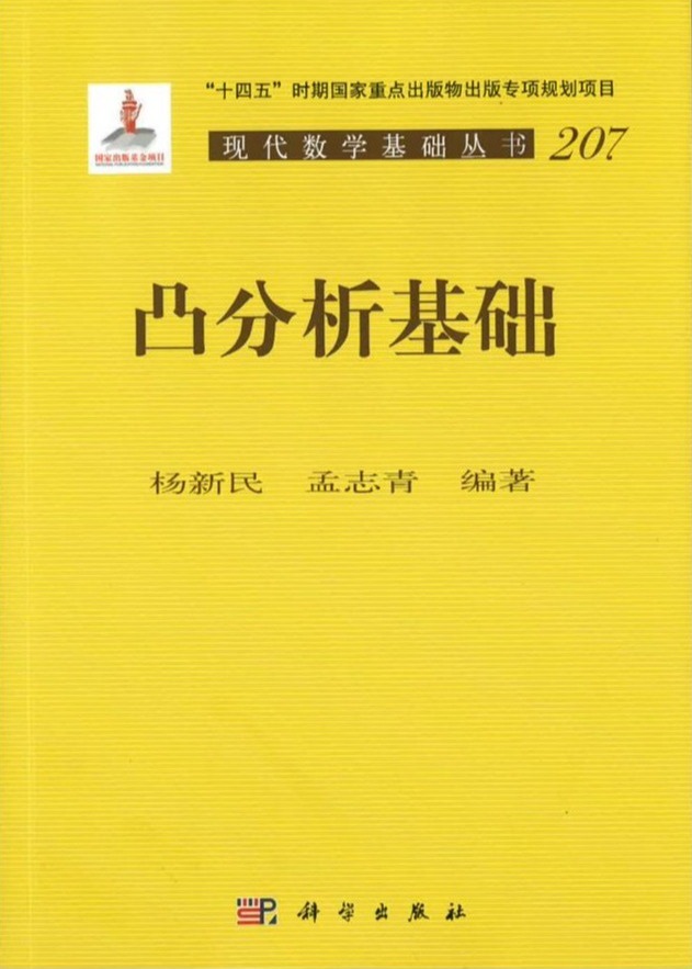 杨新民教授长期深耕凸分析与向量优化研究,《凸分析基础》系统凝练了其多年在凸分析领域的理论成果,也是他主持的国家自然科学基金重大项目成果的一部分。该书于2025年3月由科学出版社重点出版,是“十四五”时期国家重点出版物出版专项规划项目《现代数学基础丛书》(第五辑)的著作之一。