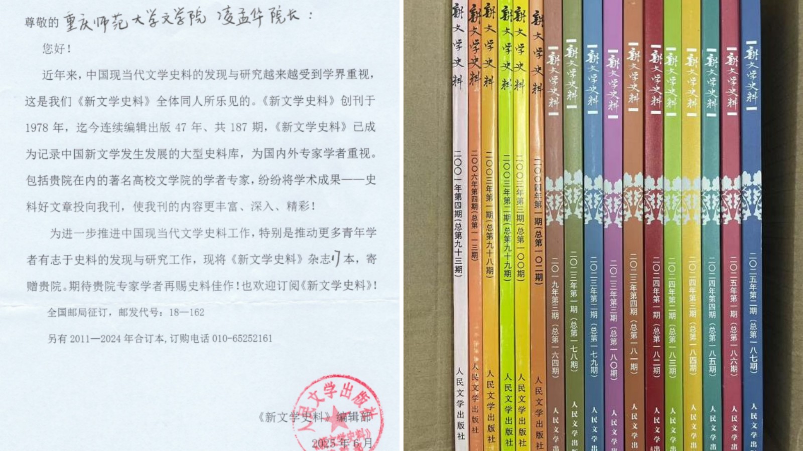 近日,bat365文学院收到了《新文学史料》编辑部寄赠的17本《新文学史料》杂志,其中包括2023年至今的全套刊物10本以及2001—2019年间的珍贵旧刊7本。