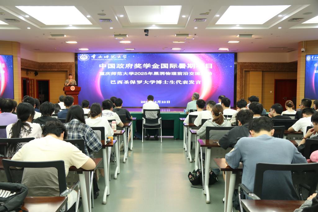 巴西圣保罗大学博士生代表João Vitor Santos Perles也作了发言,他表示非常荣幸能获得中国政府资助参加此次国际暑期项目,并期待在此次活动中能系统学习黑洞物理的前沿知识。