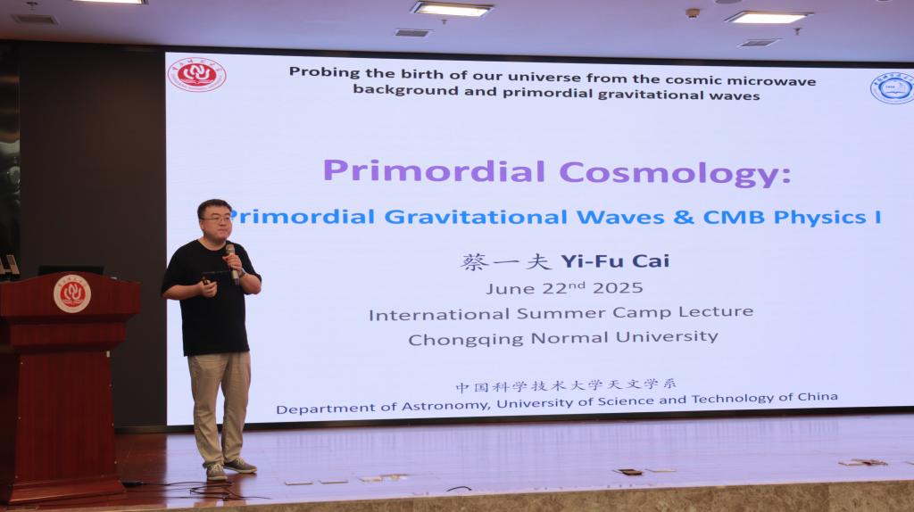 在学术交流环节,蔡一夫系统讲解了宇宙从何而来、经历了怎样的演变、未来将走向何方等现代宇宙学的核心科学问题。中国科学技术大学的胡钰敏博士介绍了扩展引力的有效场论表述。重庆大学李昕教授和重庆交通大学何柯腱博士分别详细讲解了Finsler Schwarzschild黑洞和Palatini f(R) 引力中微型玻色子星的光学成像等方面的最新研究进展。
