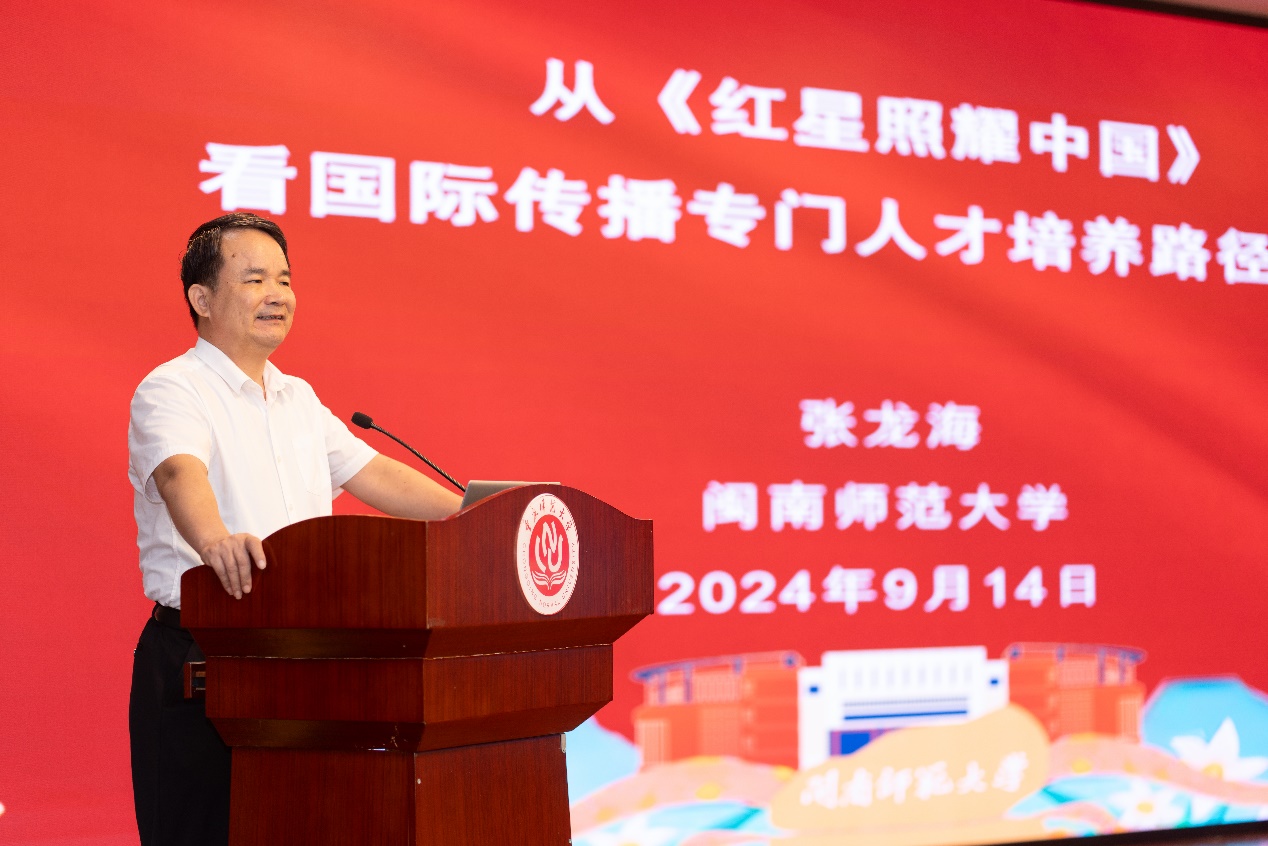 闽南师范大学副校长张龙海教授在题为“从《红星照耀中国》看国际传播专门人才培养路径探索”的发言中,强调了国际传播能力的重要性,以及《红星照耀中国》对新时代国际传播人才培养的深刻启示。他提出融合专业课程、通识课程与五育并举的国际传播人才培养路径,旨在提升中国在国际舞台上的传播力和影响力。