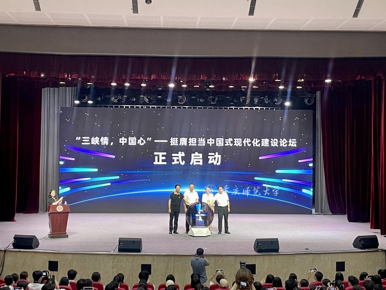 最后,活动举行了“三峡情,中国心——挺膺担当中国式现代化建设高端论坛”启动仪式,该论坛是重庆新闻学院坚定马克思主义新闻观具体践行的一次重要起点,将围绕人才培养、科学研究、社会服务、文化传承创新和国际交流合作等高校五大职能,为三峡地区的高质量发展交流、研讨、聚力。