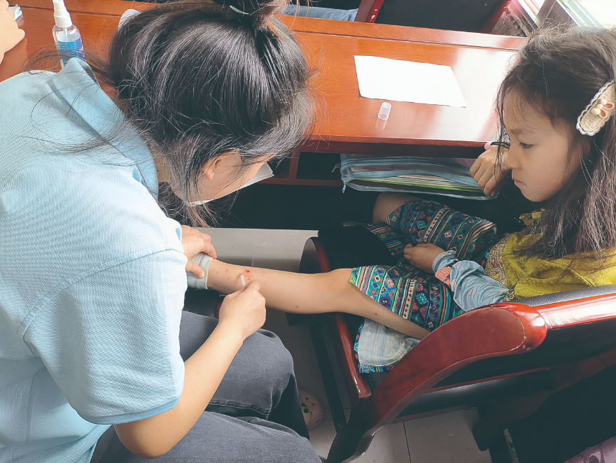 于是,在陪护活动中,杨轹文立足“送欢乐”,教孩子唱歌、跳舞,学习新知识,开展丰富多彩的活动。
