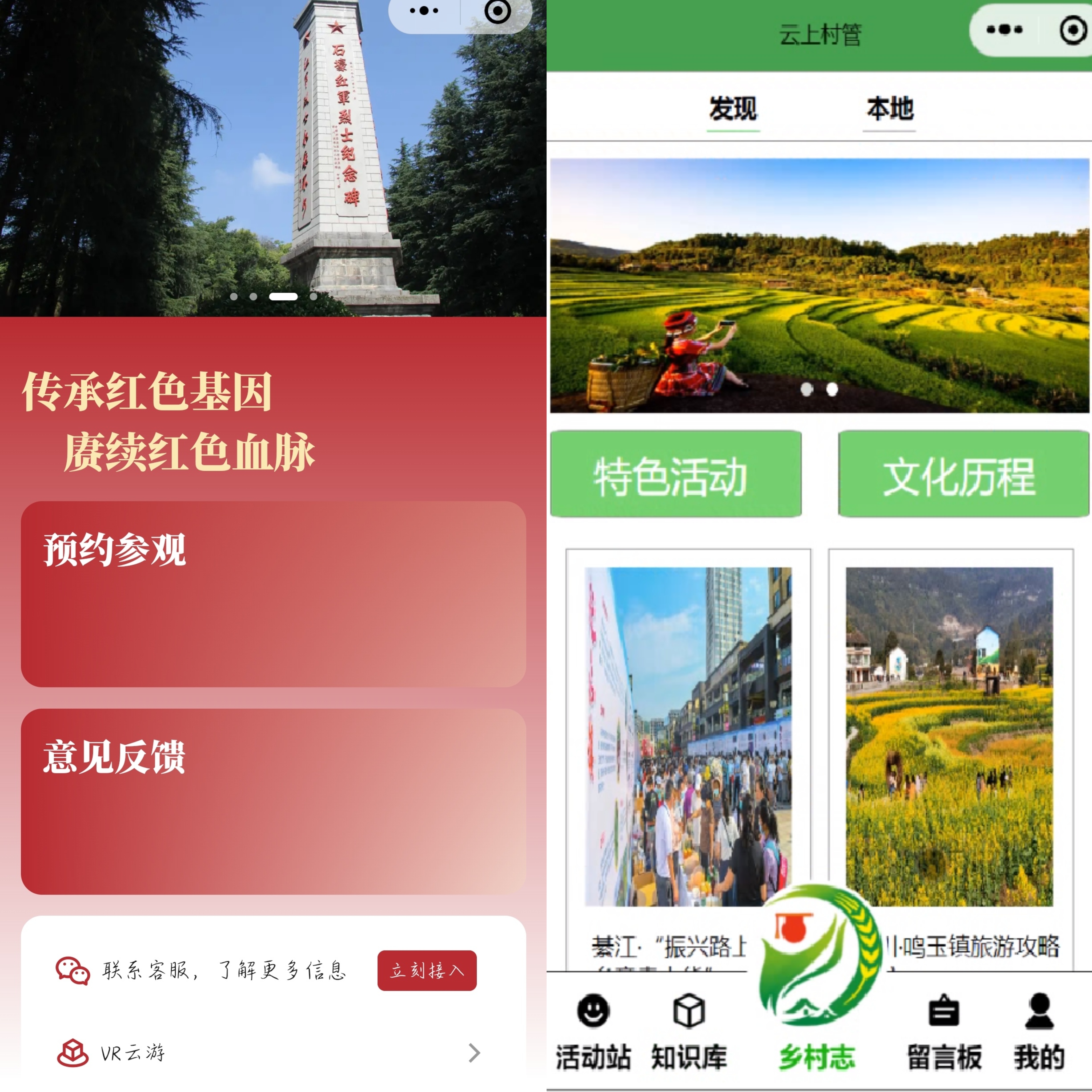 研发的《红綦旅约》和《云上村管》小程序截图。bat365官方官网供图
