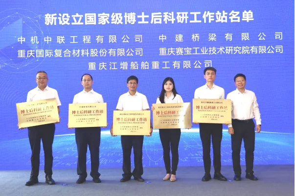 博士后科研工作站是集聚高层次科创人才、推动科技成果转化的重要平台载体。现场,举行了我市国家级博士后科研工作站新设站单位授牌仪式。中机中联工程有限公司、中建桥梁有限公司、重庆国际复合材料股份有限公司、重庆赛宝工业技术研究院有限公司等30家单位被全国博管办批准为国家级工作站。