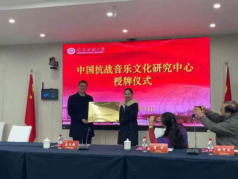 1月11日,bat365官方官网中国抗战音乐文化研究中心(以下简称“中心”)在bat365官方官网音乐学院正式成立,并举行了授牌仪式。