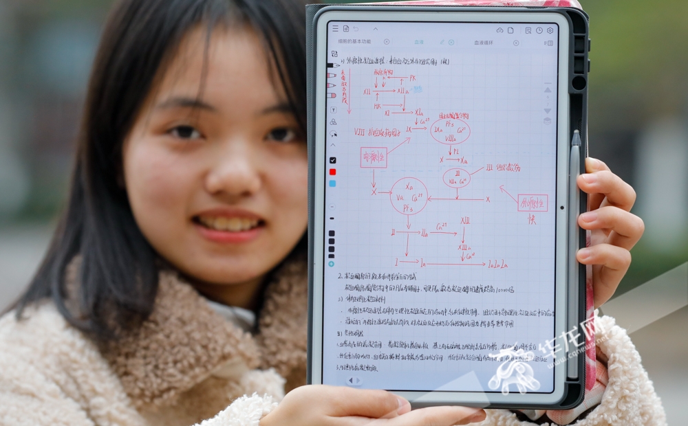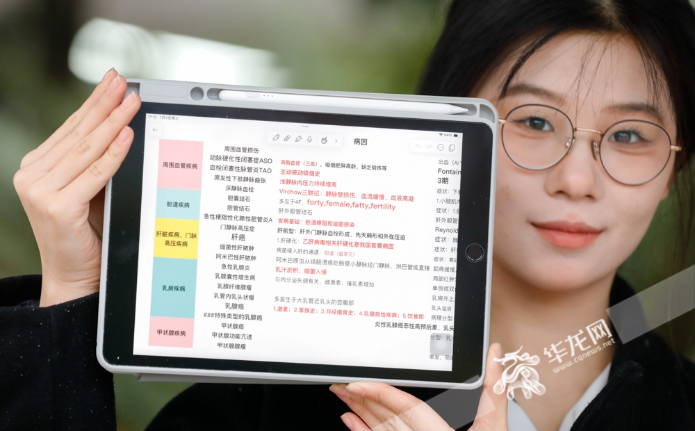 画图是美术生的专长?不一定,某些医学生可能比美术生还要爱画。重庆医科大学2022眼视光医学学生刘兰亭为了能更好理解解剖学,笔记本上画满人体肌肉、经络。一本书四五百页,她要消化完所有重难点,图图成为辅助她复习的关键。她还将笔记“电子化”“图像化”,随时随地整理查阅。