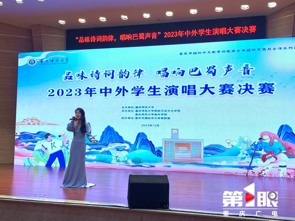 在中外学生演唱大赛决赛上,25组中外选手用家喻户晓的唐诗名家描写巴蜀、三峡等人文地貌的精品诗词,搭配婉转悠扬的旋律,生动演绎了传统诗词的韵律之美。