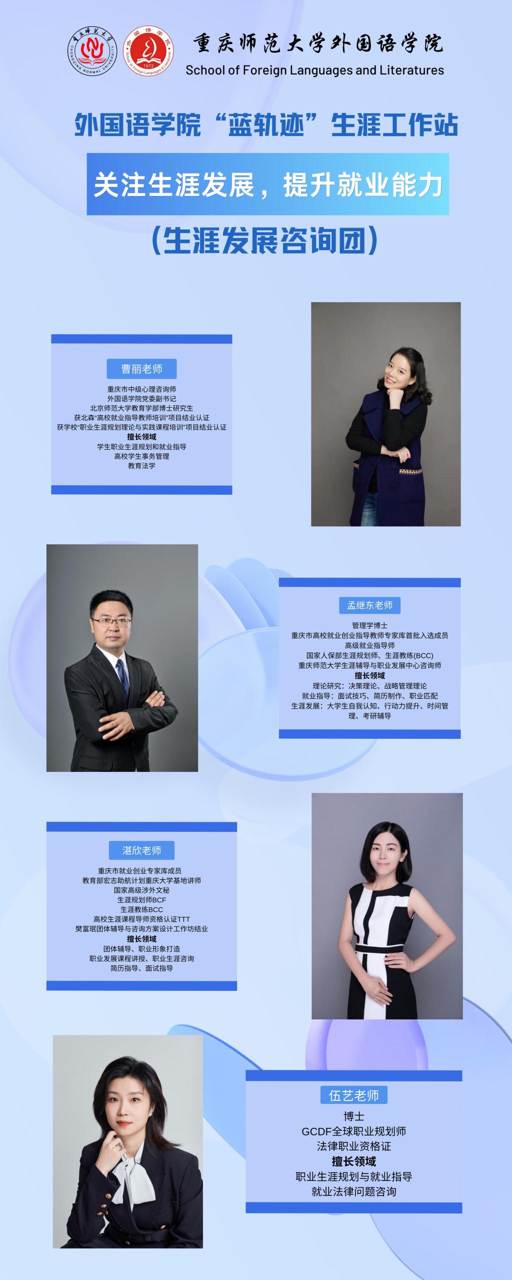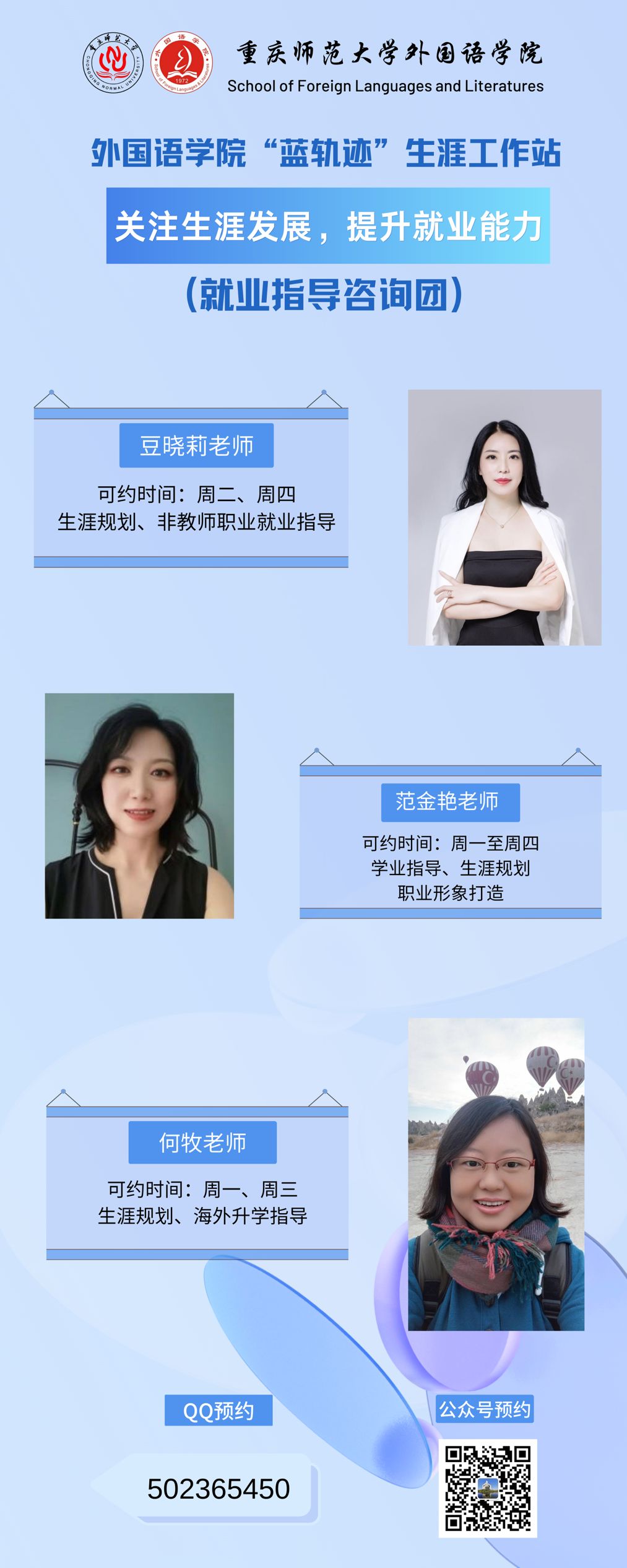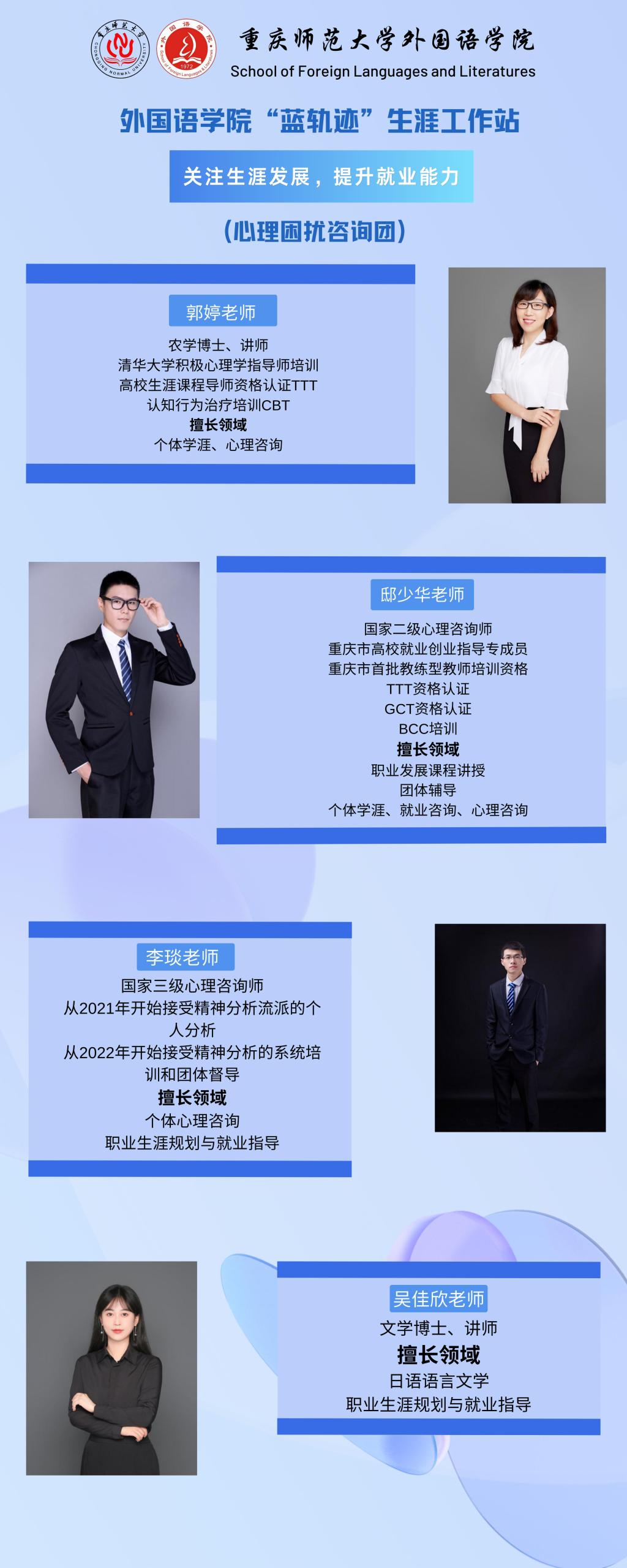 华龙网讯(郭晓彤)近年来,bat365官方官网外国语学院高度重视心理健康教育与心理咨询工作,在心理育人一体化建设过程中融合就业育人。学院紧密结合同学成长需求和就业需求,积极创新“心理育人+就业育人”的高校心理教育实施新模式,目前,学院“知心阁”心理工作站联合“蓝轨迹”生涯工作站,邀请了学院行政老师、专业课教师以及全体辅导员同专业咨询师共同组成了5类主题咨询团——心理困扰解忧团、专业学习咨询团、生涯发展指引团、面试工作坊、就业指导咨询团。依托“线上+线下”的咨询形式,打造了力量共聚、责任共担、资源共享和协同互动的“心理+就业”深度融合的全员育人格局,全面立体的覆盖学院师生,致力于提升同学心理健康水平,以积极心态迎接就业挑战。